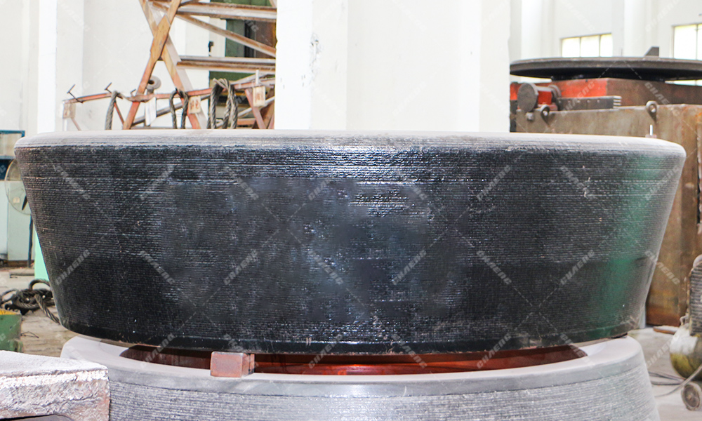 新鄉(xiāng)長城針對大型立磨工況條件,引進(jìn)國外先進(jìn)堆焊技術(shù),優(yōu)化明弧焊工藝,采用進(jìn)口德國品牌焊絲堆焊,確保堆焊質(zhì)量。
